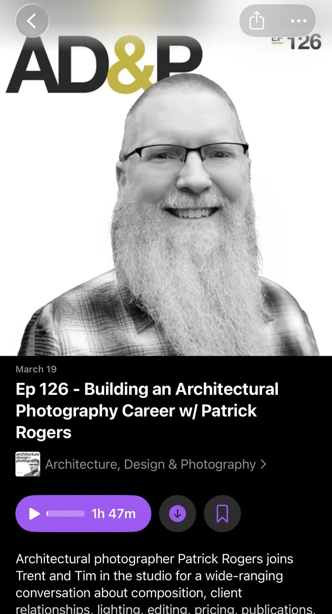 A while ago, I was interviewed for Trent Bell and Tim Holt’s podcast, Architecture Design & Photography.